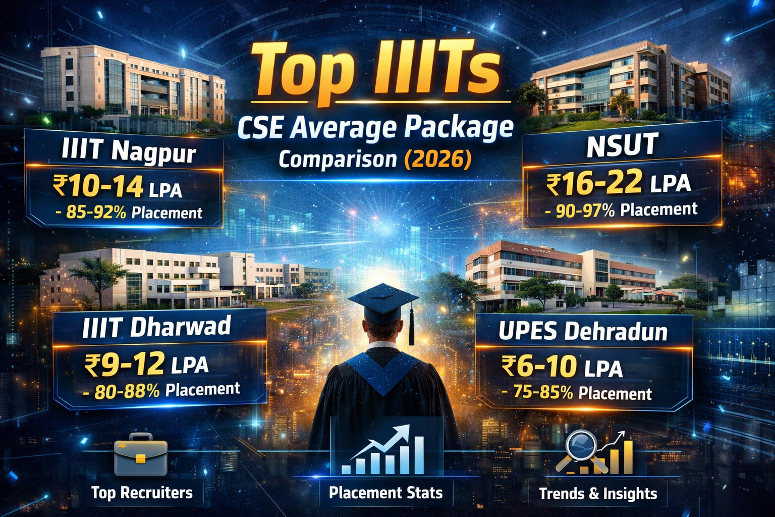 Top IIITs CSE Average Package Comparison (2026) (IIIT Nagpur, Dharwad, NSUT, UPES Dehradun)